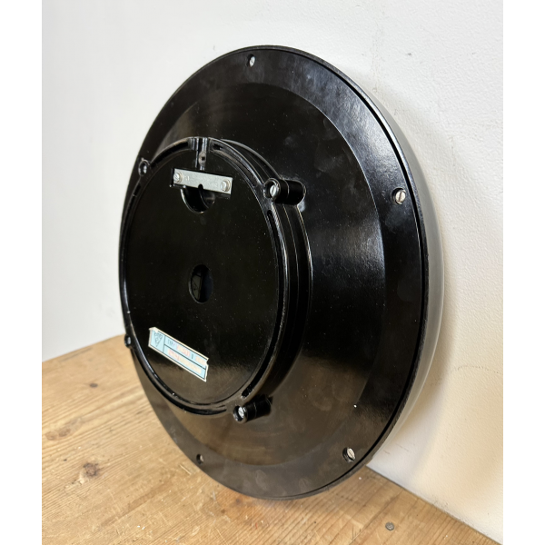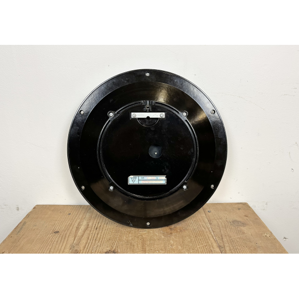 staré industriální hodiny, bakelitový rámhodiny jsou funkční , strojek na bateriev tomto barevném provedení jsou výjimečnéRozměry: průměr 37 cm ,8 cm výška od zdi.váha 2,4 kg |