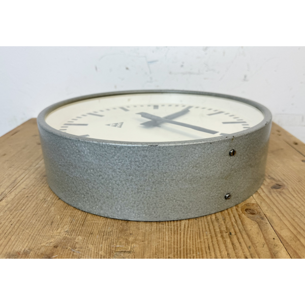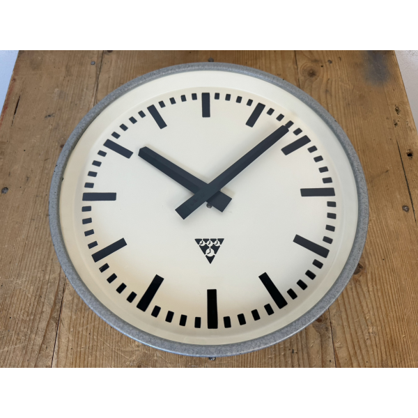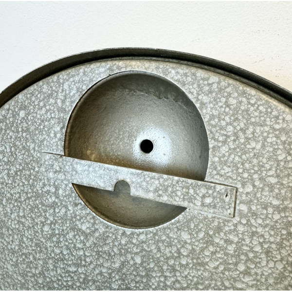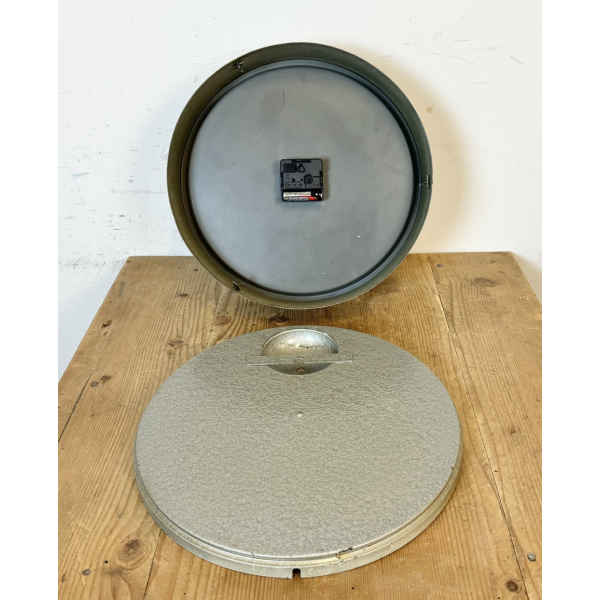 staré industriální hodiny, plechový rámhodiny jsou funkční strojek na baterieRozměry: průměr 33 cm , 9 cm výška od zdi, váha 2,5 Kg |