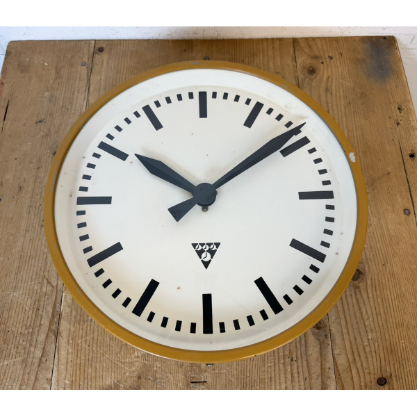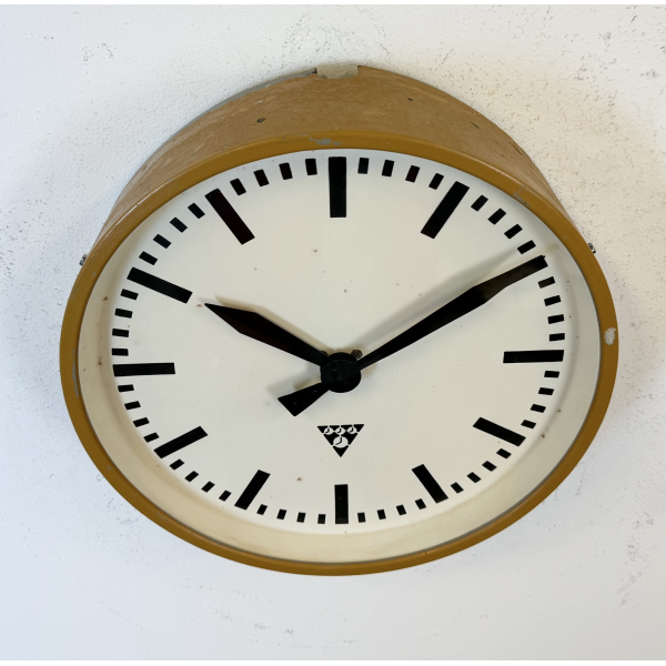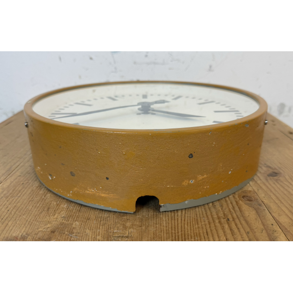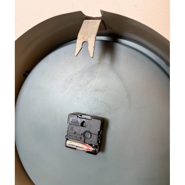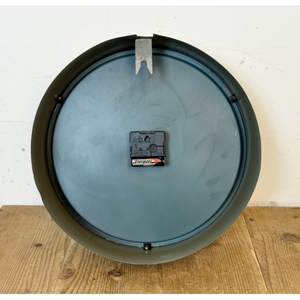staré industriální hodiny, plechový rámhodiny jsou funkční strojek na baterieRozměry: průměr 33 cm , 9 cm výška od zdi, váha 2 Kg |