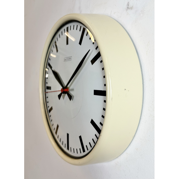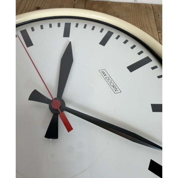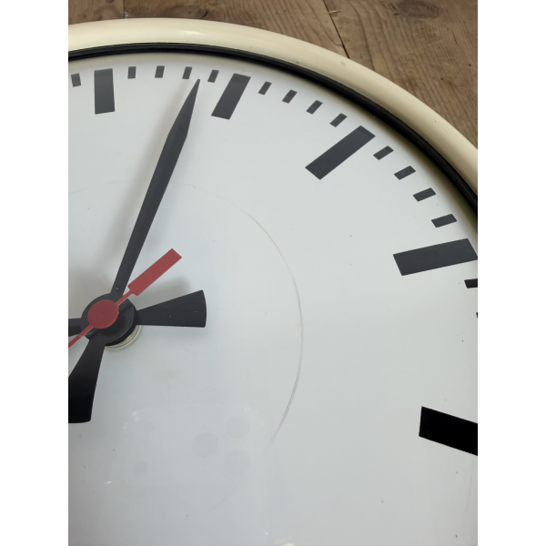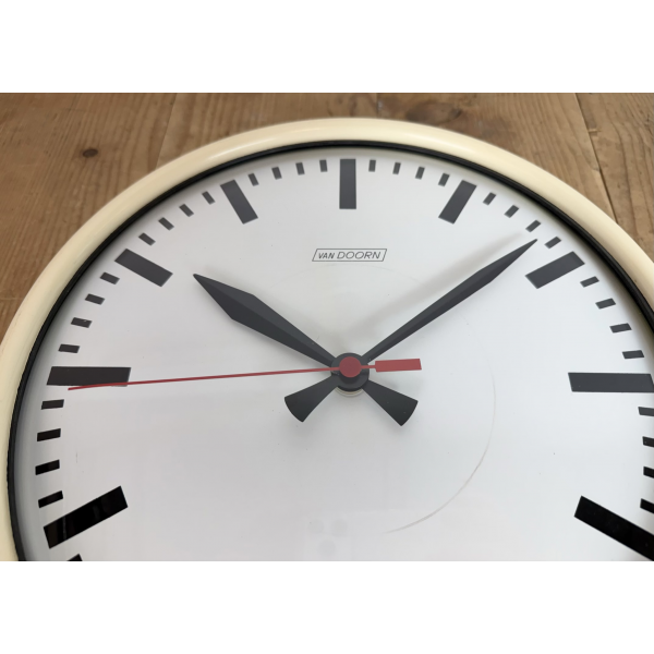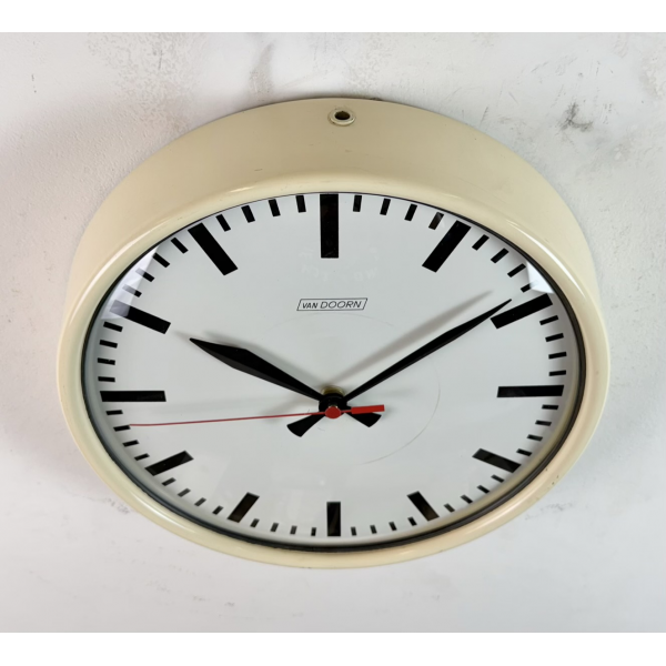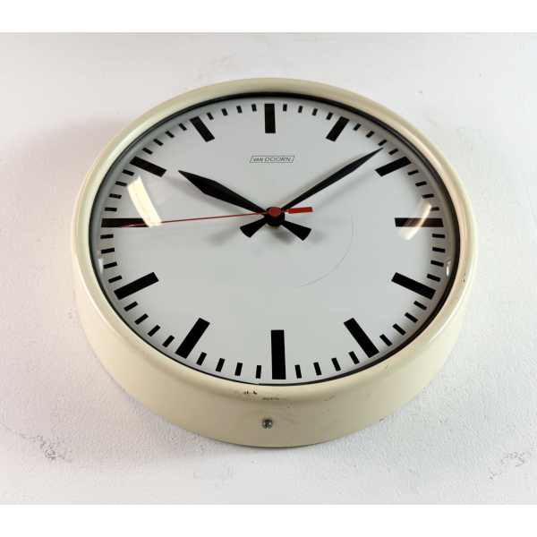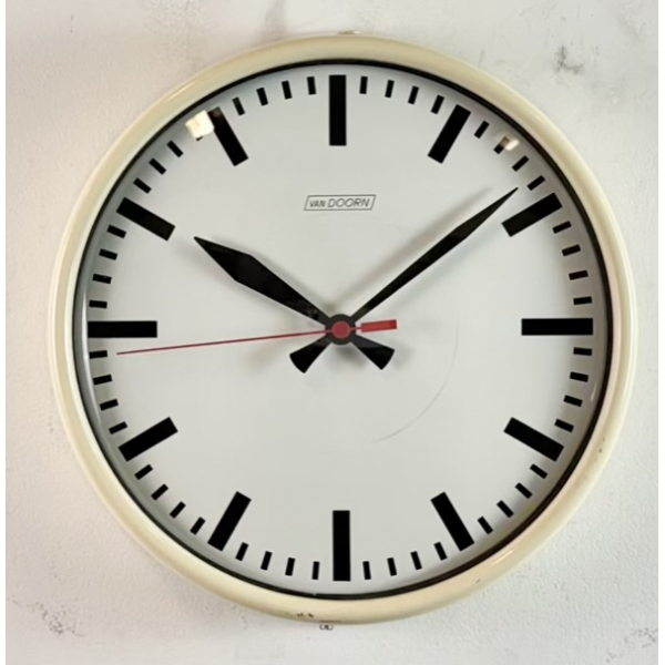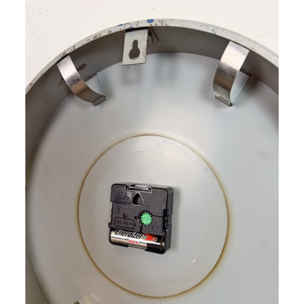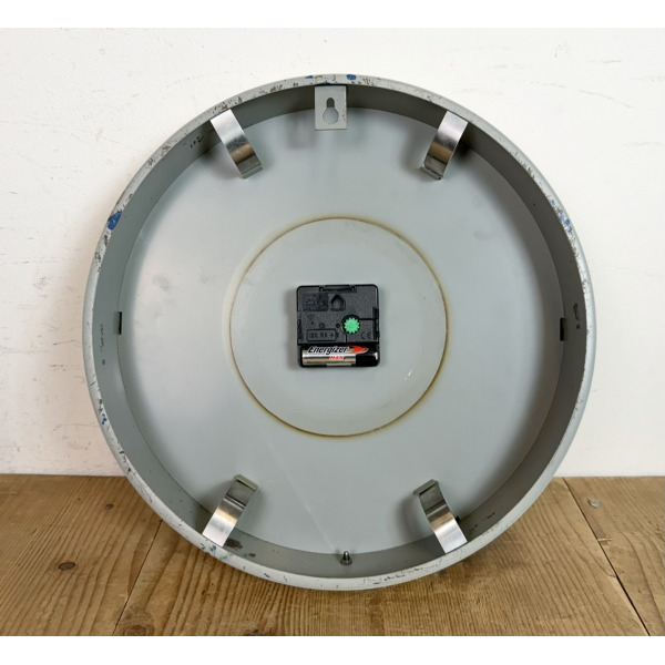 staré industriální hodiny, plechový rámhodiny jsou funkční , strojek na bateriiVyrobeno v HolandskuRozměry: průměr 32 cm , 7 cm výška od zdi, váha : 1,5 Kg |