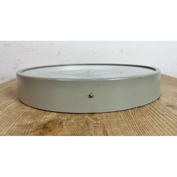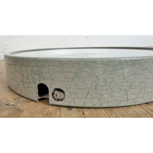 staré industriální hodiny, plechový rámhodiny jsou funkční , strojek na bateriiVyrobeno v HolandskuRozměry: průměr 34 cm , 5,5 cm výška od zdi, váha : 1,3 Kg |