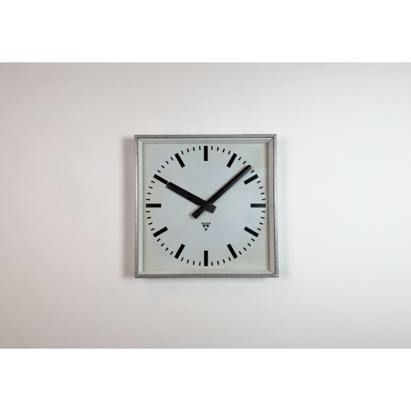 staré industriální hodiny, plechový rámhodiny jsou funkční , strojek na baterieRozměry: 44x44 cm , 6 cm výška od zdi.váha 3kg |
