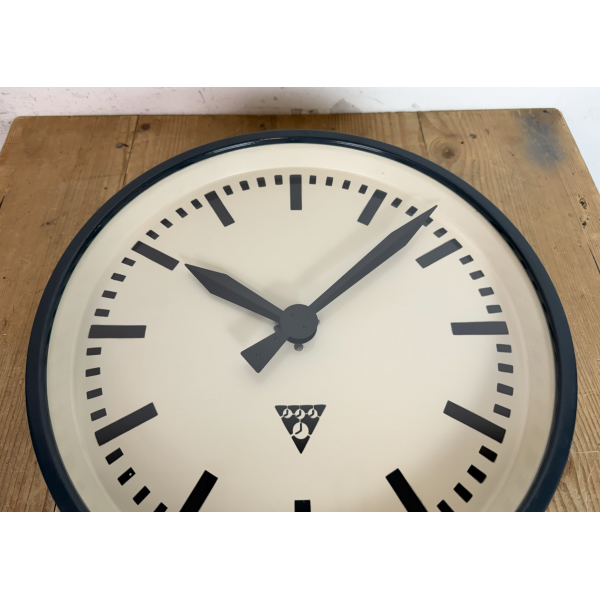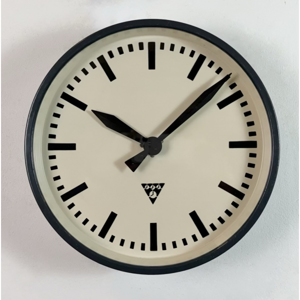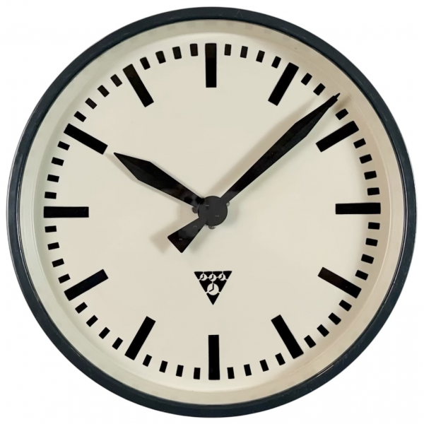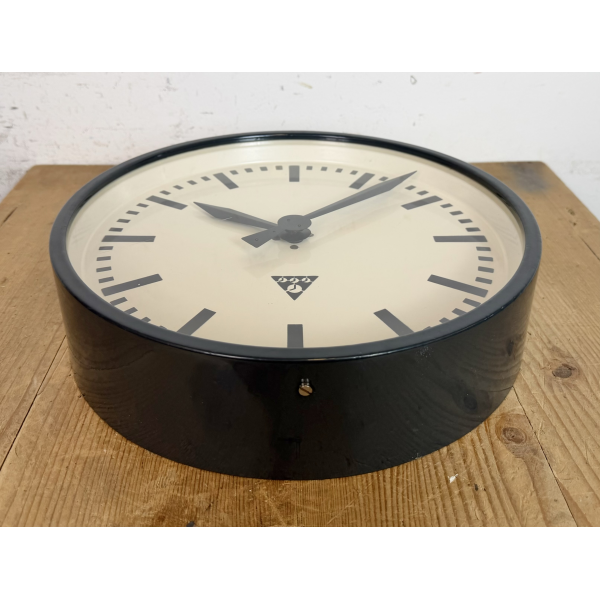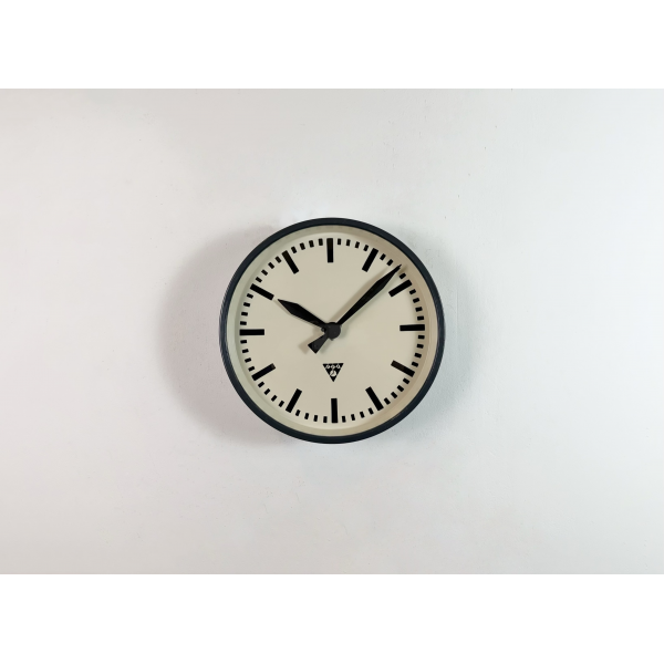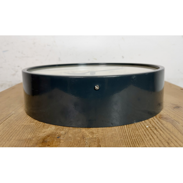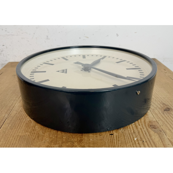 staré industriální hodiny, plechový rámhodiny jsou funkční strojek na baterieRozměry: průměr 33 cm , 8,5 cm výška od zdi, váha 2 Kg |