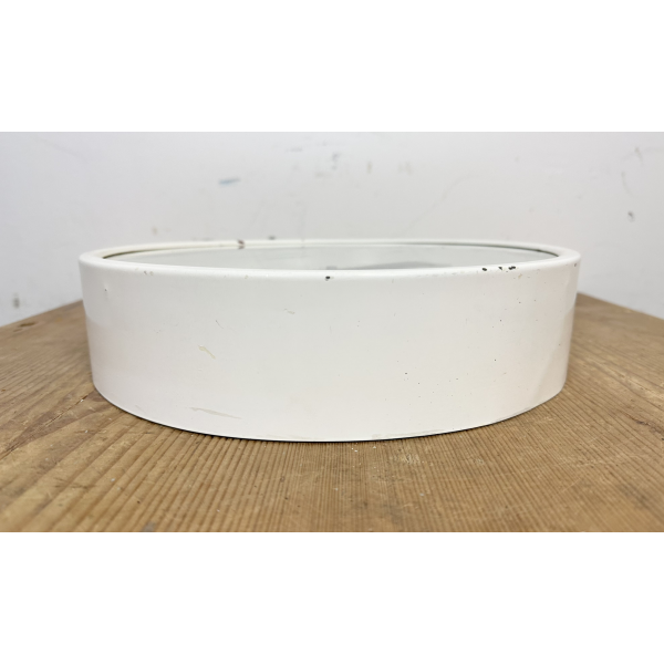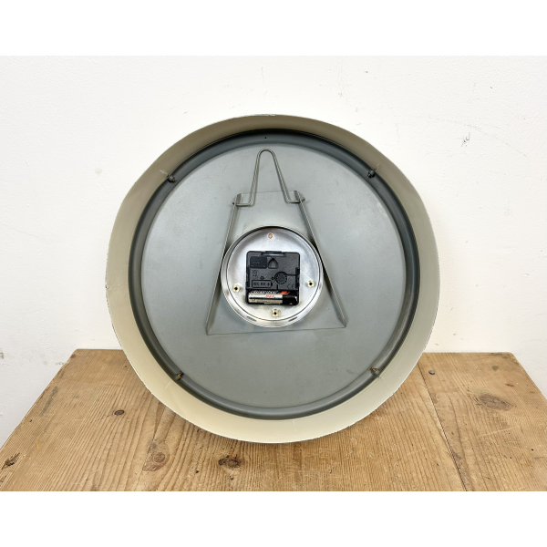 staré industriální hodiny,hodiny jsou funkční , strojek na baterievyrobeno v NěmeckuRozměry: průměr 32 cm , 7 cm výška od zdi, váha : 1,6 Kg |