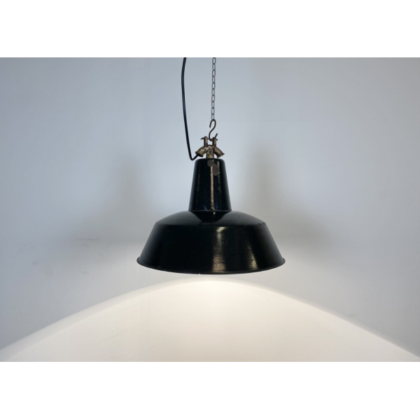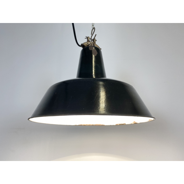 Kovová  smaltovaná tovární lampa, vyrobena okolo roku 1950