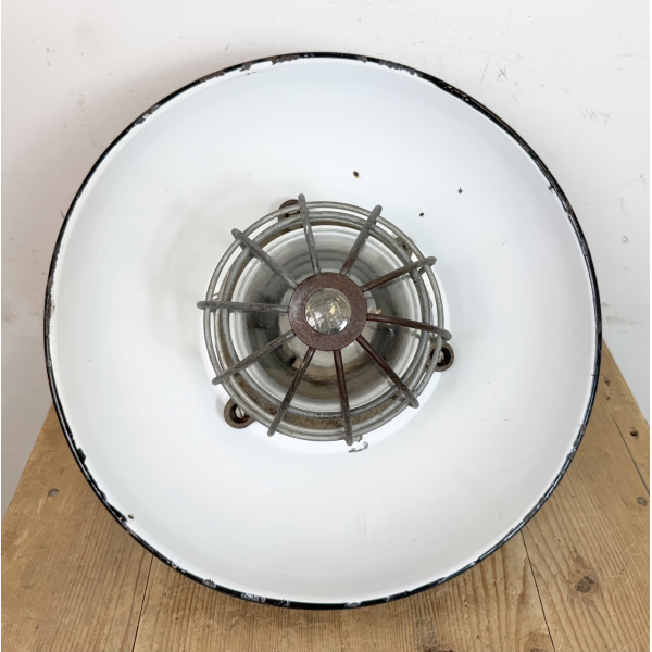 Industriální smaltovaná lampa s ochrannou mřížkou