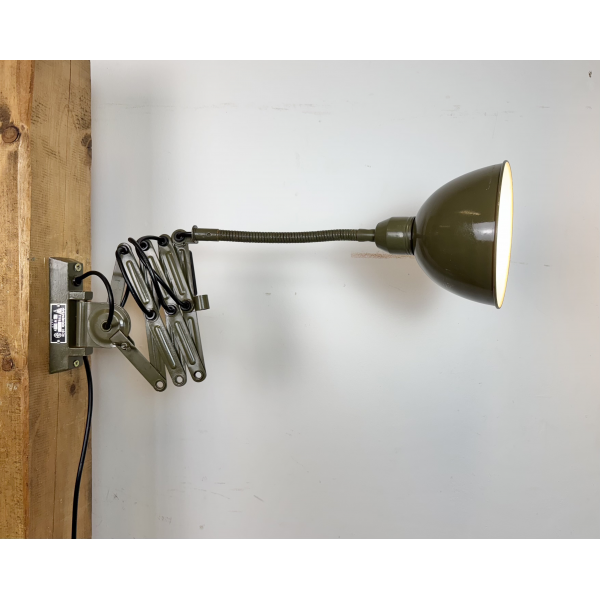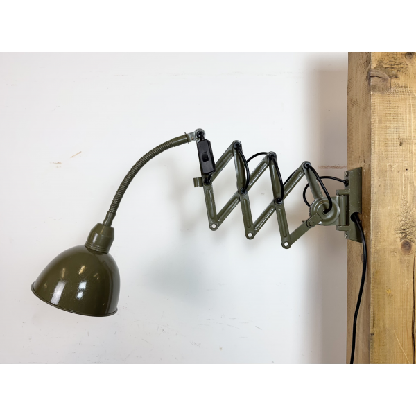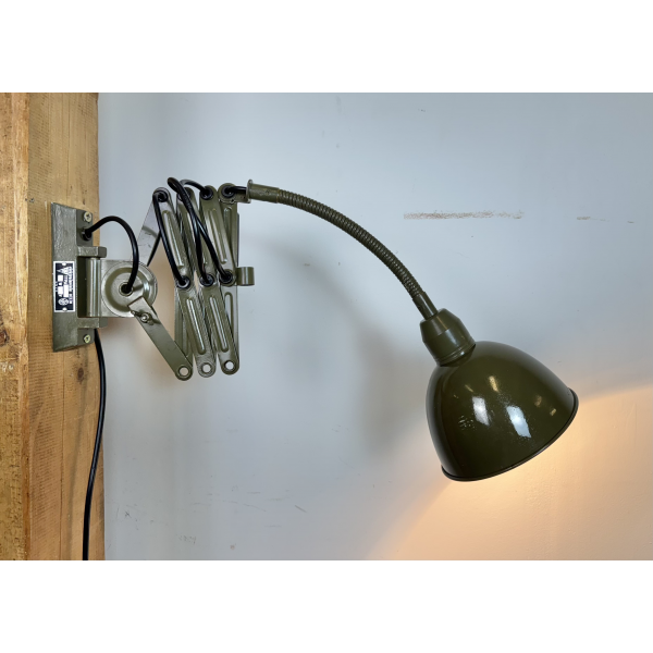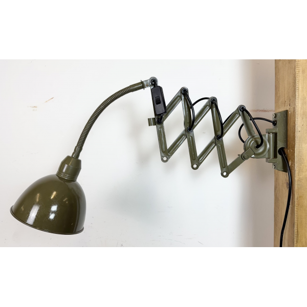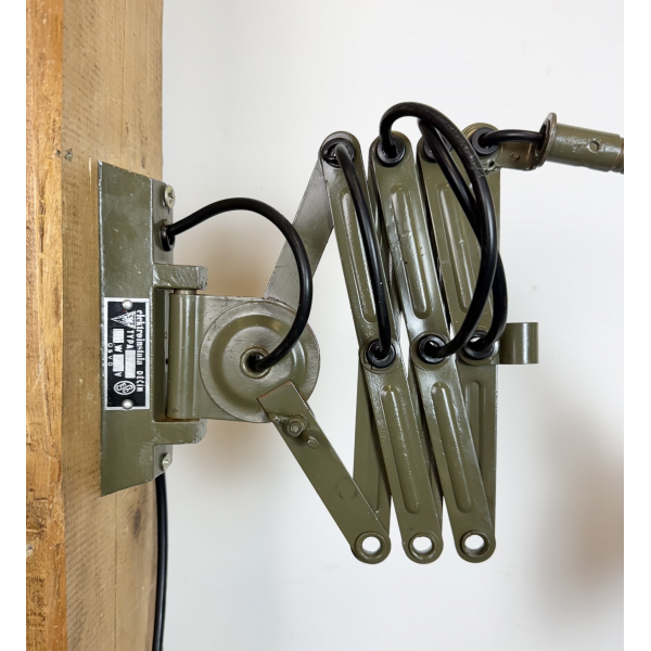Industriální nůžková lampička INSTALA DĚČÍN ,celokovová,  nastavitelné  stínítko . Stará lampička původně používaná především u strojů