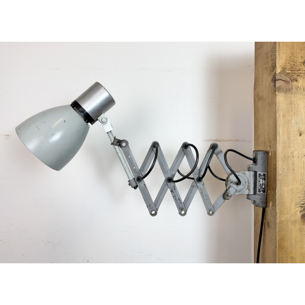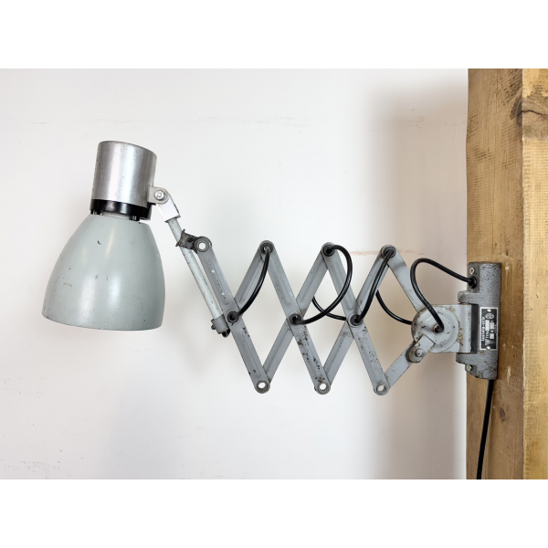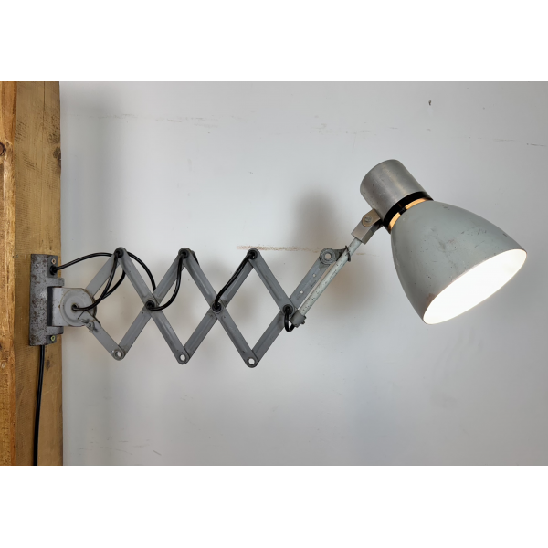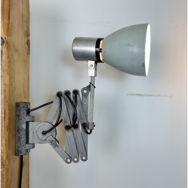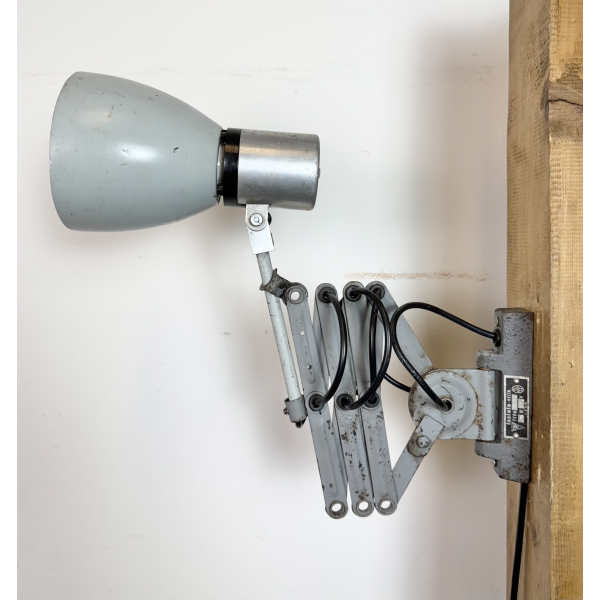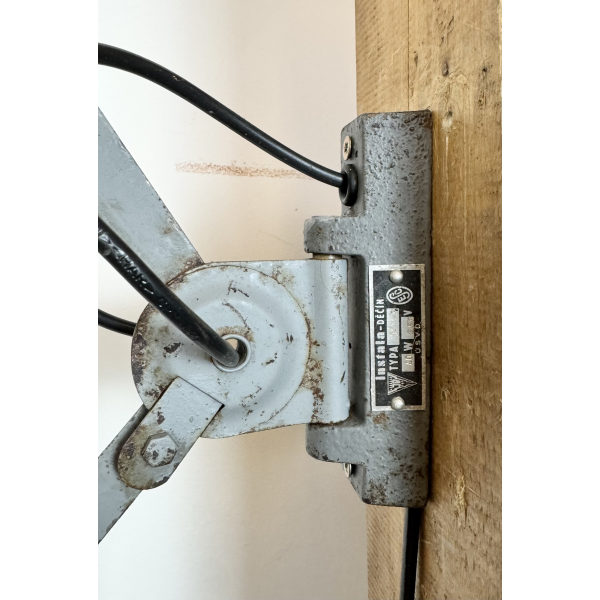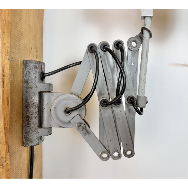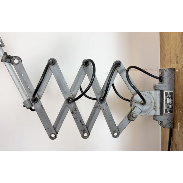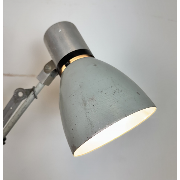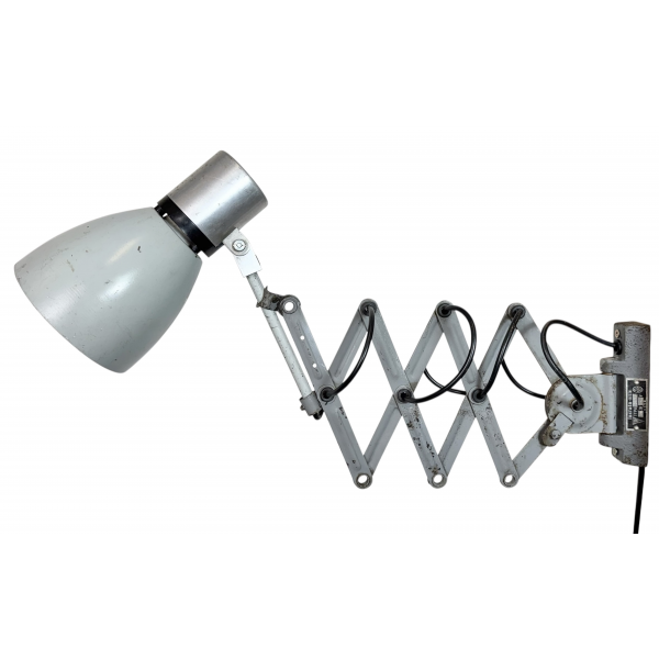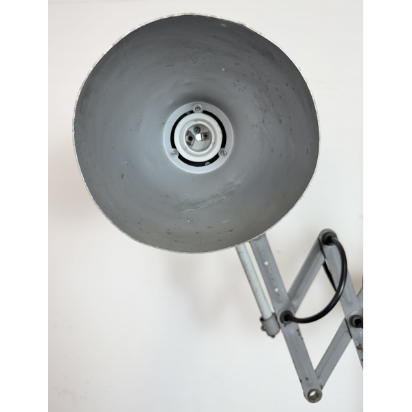industriální nůžková lampička,celokovová, nastavitelné  stínítko . Stará lampička původně používaná především u strojů
