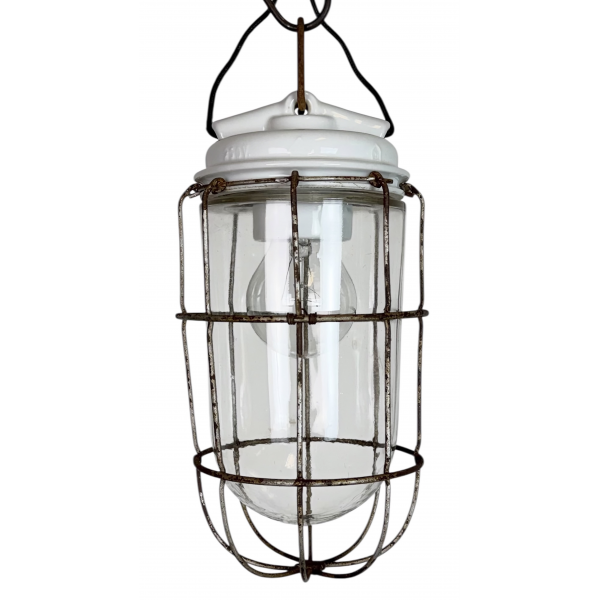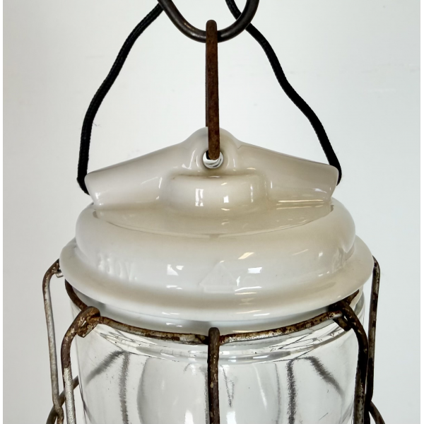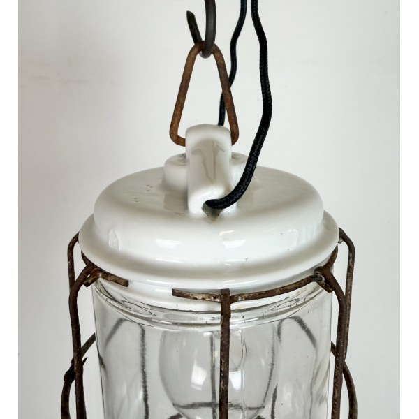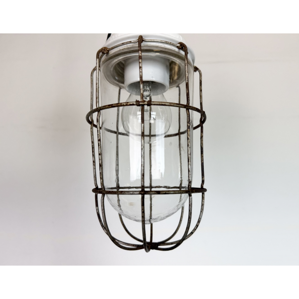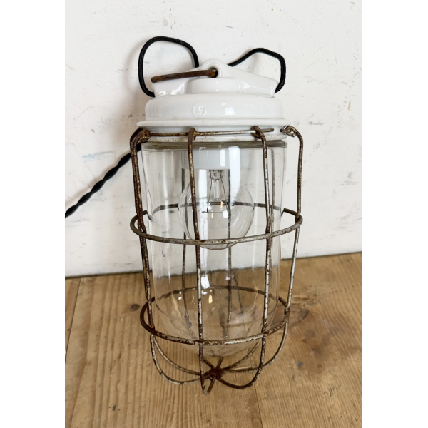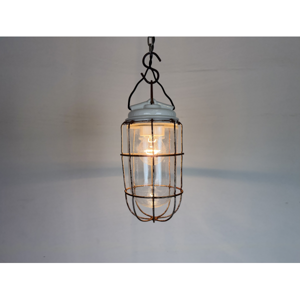 Tovární lampa , Keramický vršek, ochranná síťka,v interiéru vypadá velice zajímavě