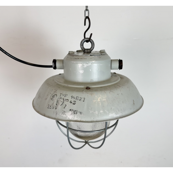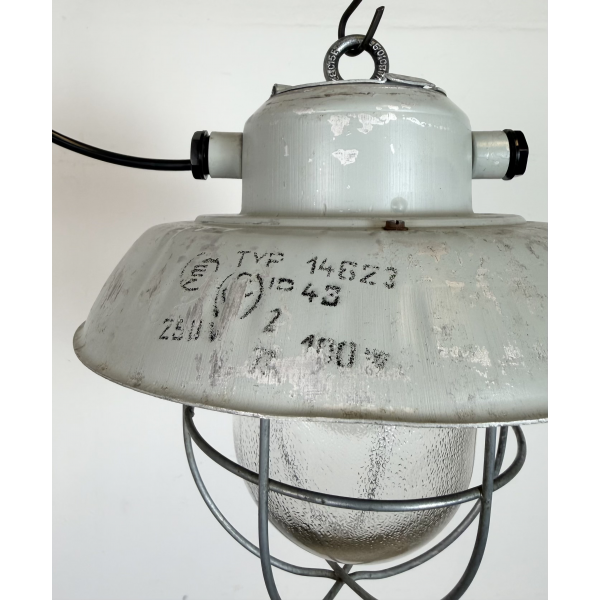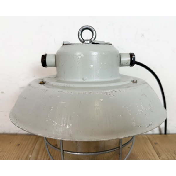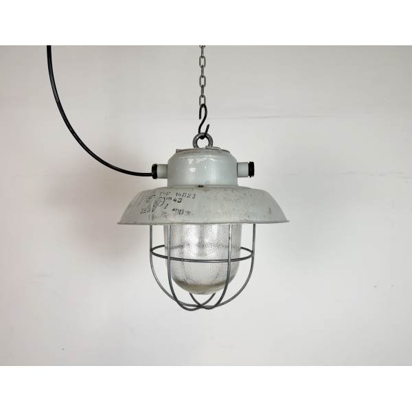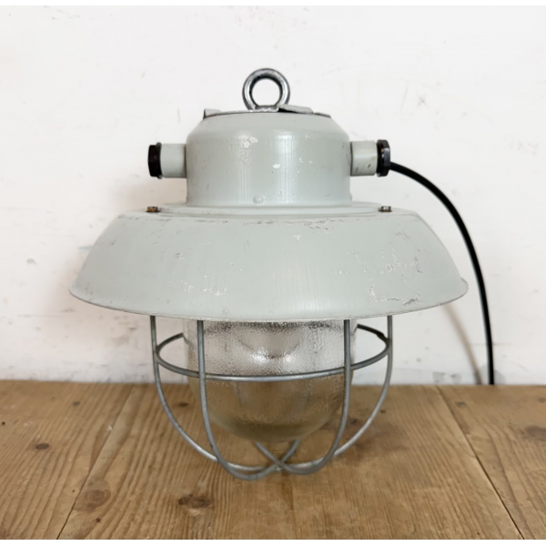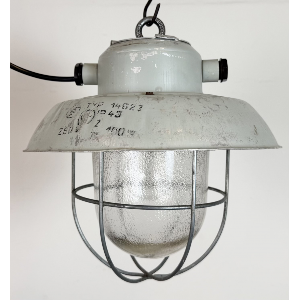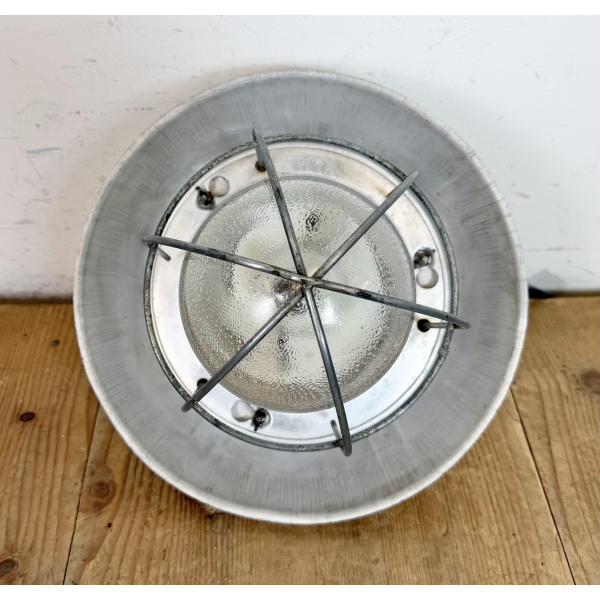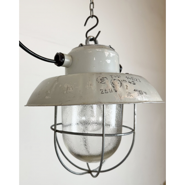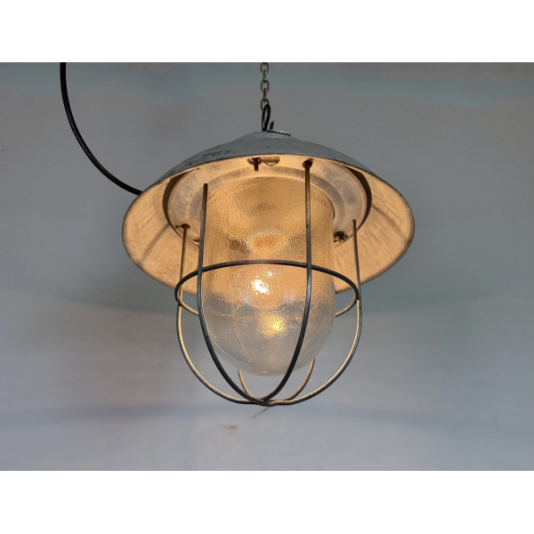 Hliníková tovární lampa s ochranným sklem a síťkou