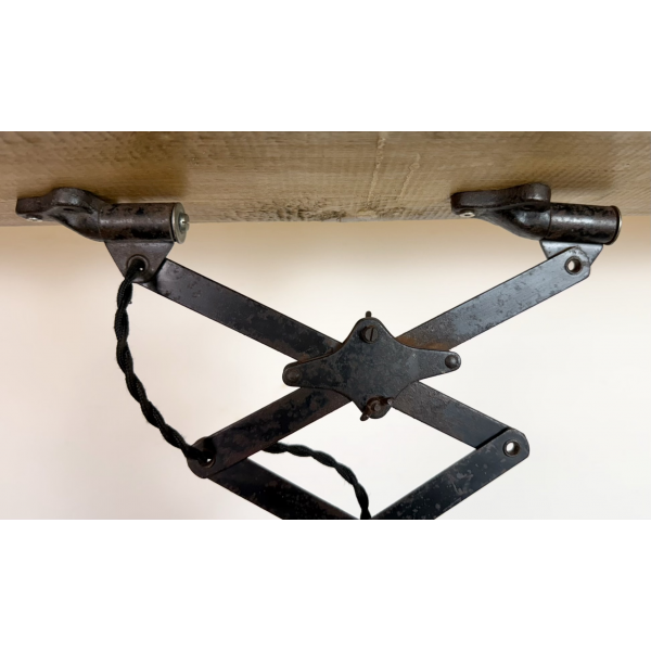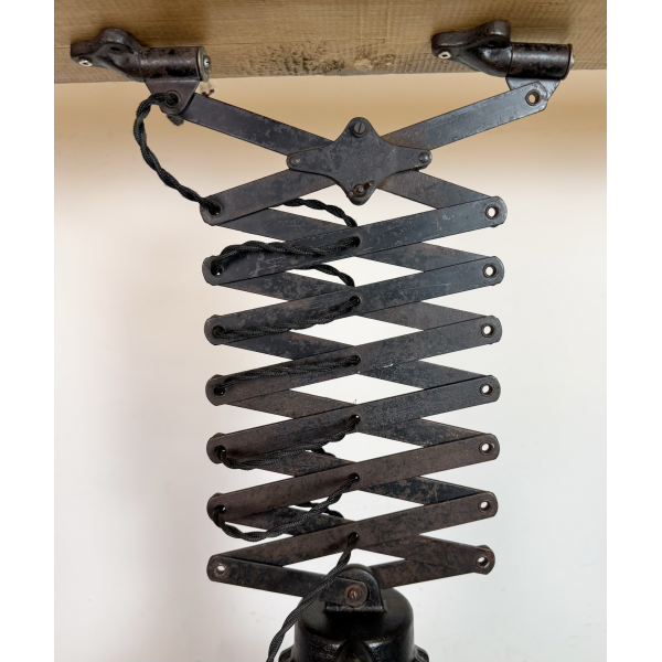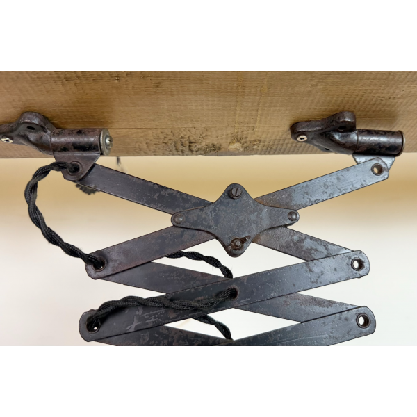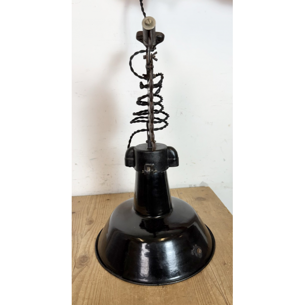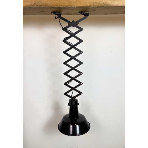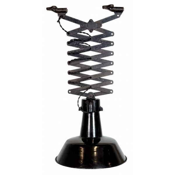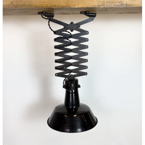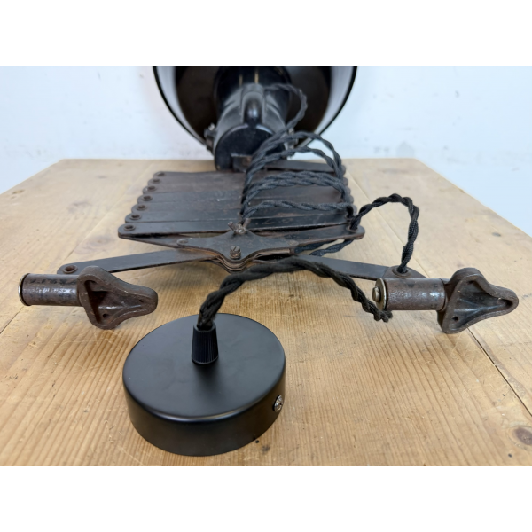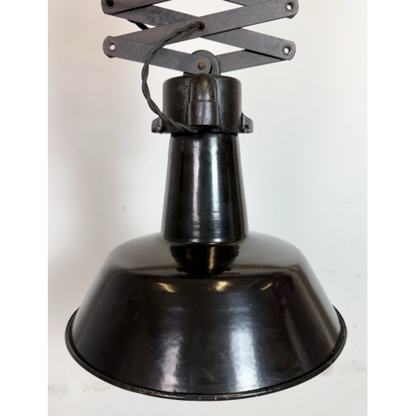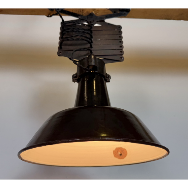Industriální smaltovaná lampa zavěšena na harmonice Zobrazit v plné velikosti