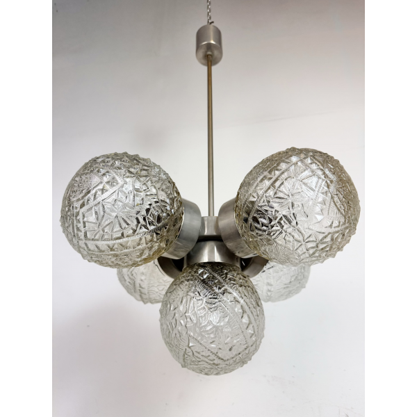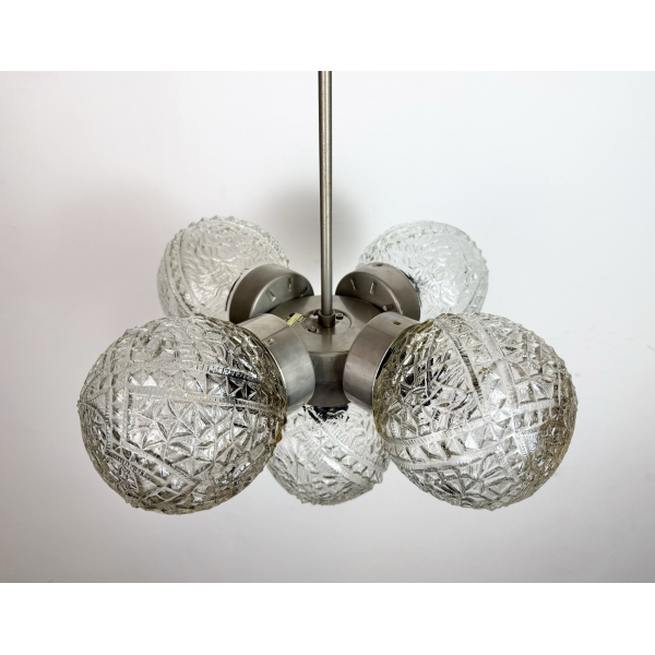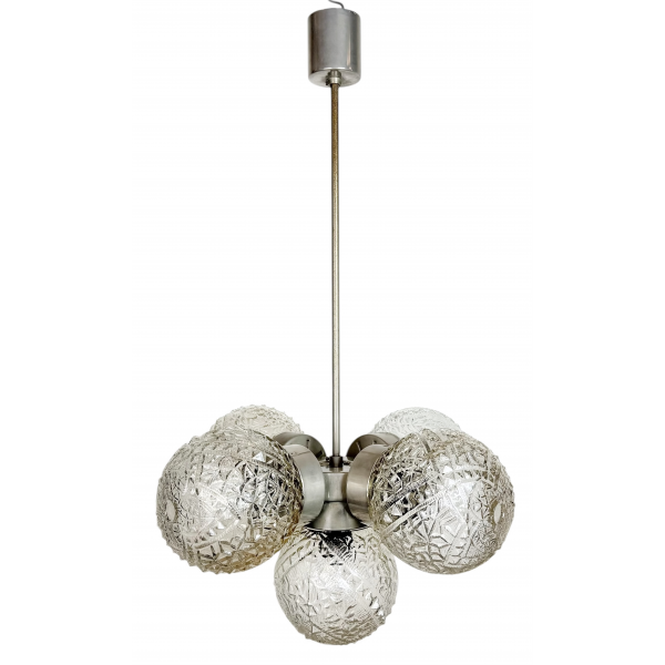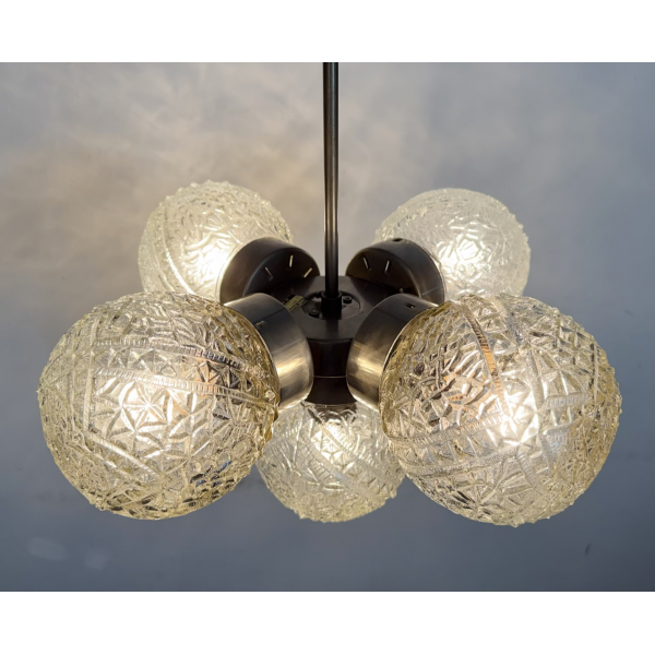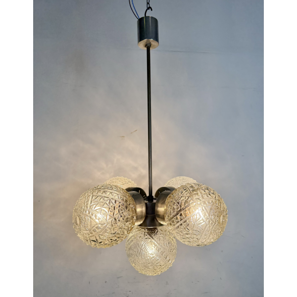 Retro skleněný lustr, vyrobeno v Lustry n.p. Kamenný Šenov